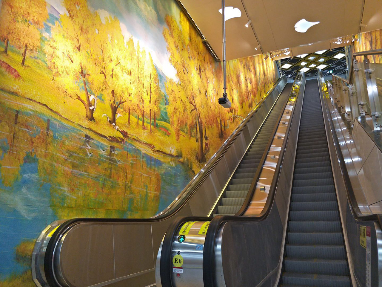 蒙娜麗莎瓷藝在行業內首創“新型多材料復合壁畫”新概念,以大規格瓷板為基礎,多種裝飾材料有機結合的方式,規避了傳統單一材料彩繪壁畫立體感弱,浮雕、雕塑壁畫色彩單一,單材料質感對比不強等問題,結合多年的項目實踐,實現了以陶瓷、石材、馬賽克等材料為主體,復合不銹鋼浮雕、鍛銅浮雕、砂巖浮雕、石材浮雕等多種材料,形成了色彩艷麗、材質對比豐富、立體感強等表現力強烈的表達手法。